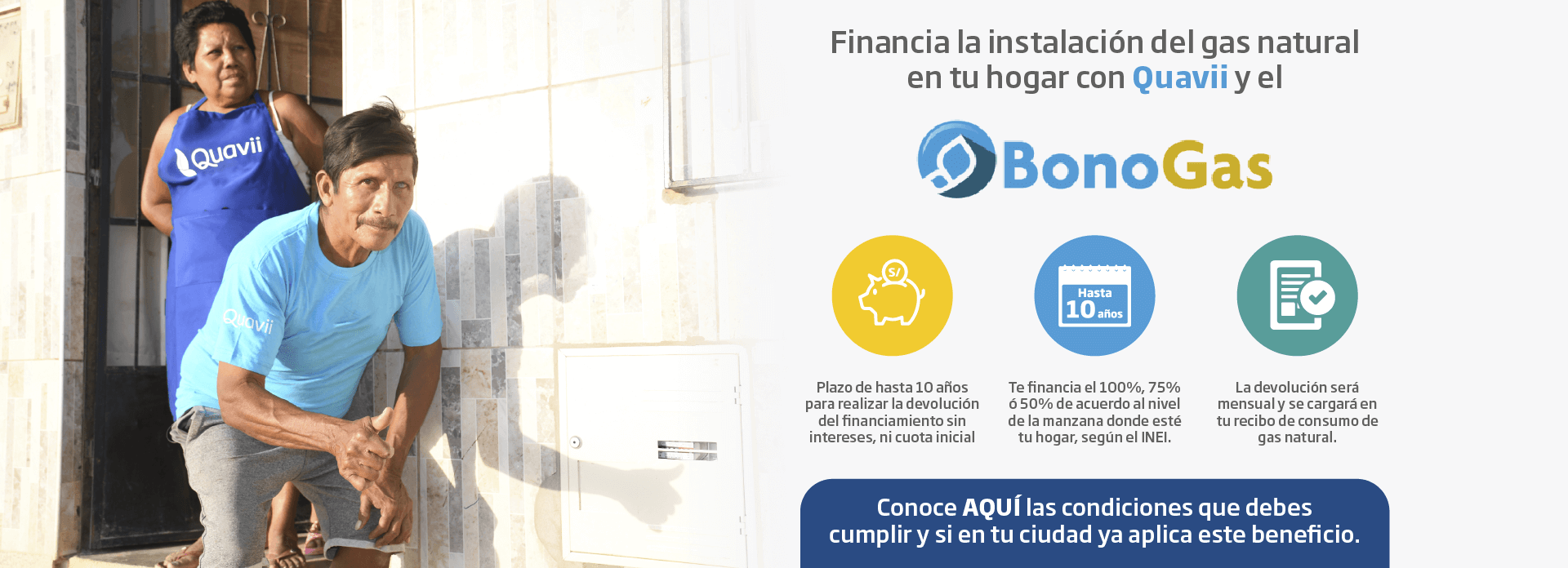 * El programa BonoGas no financia la ductería y la terma. Puedes adquirirla mediante planes de financiamiento directos de Quavii.